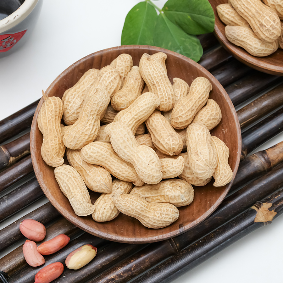 “荣成大花生“果实洁白较大,网绞清晰,壳簿籽粒饱满多为双仁果仁,籽粒呈长椭圆型,种皮成分红色,表皮光滑。